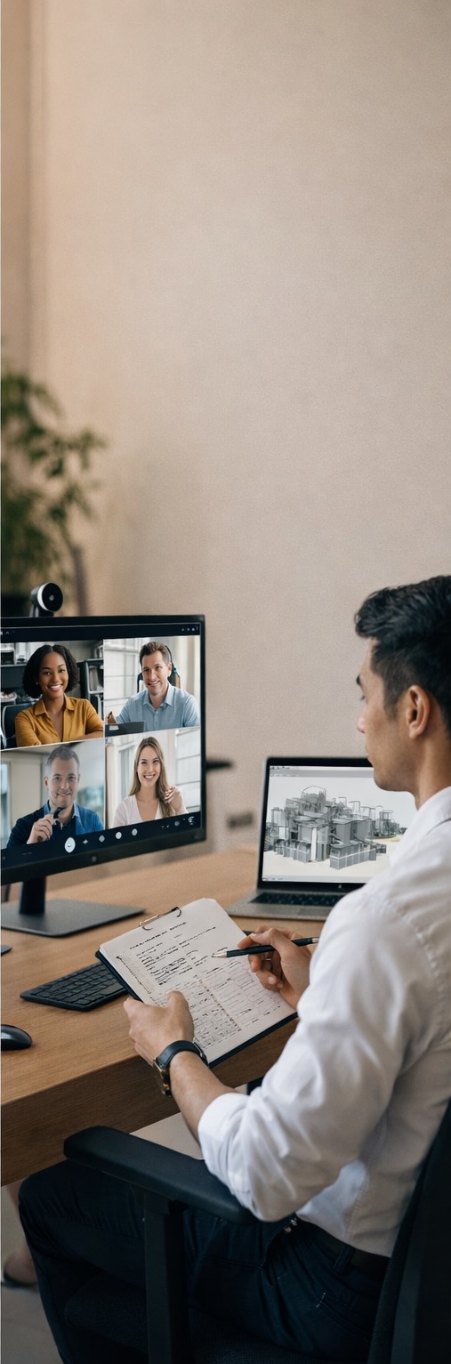 our work is 100% remote and supported by collaborative platforms (Wrike, Teams, Zoom, Zoho, and BIM tools), which allows you to grow your career while working on international standards and timelines.
